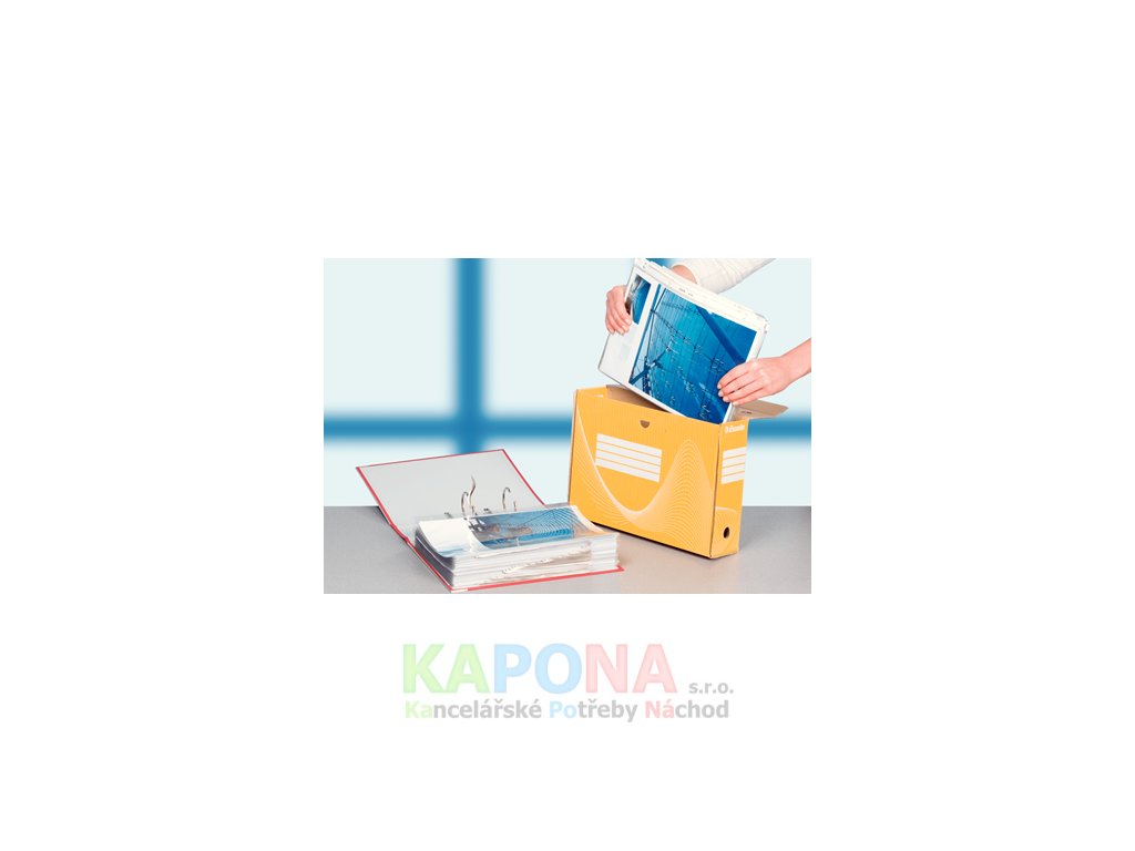 Pevná krabice z kartonu na transport a ukládání volných dokumentů.