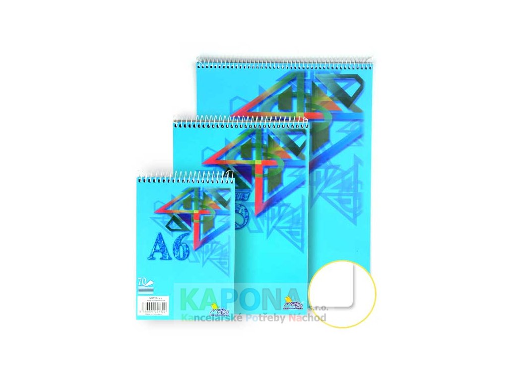 Blok s horní spirálou čistý, 70 listů, různé formáty