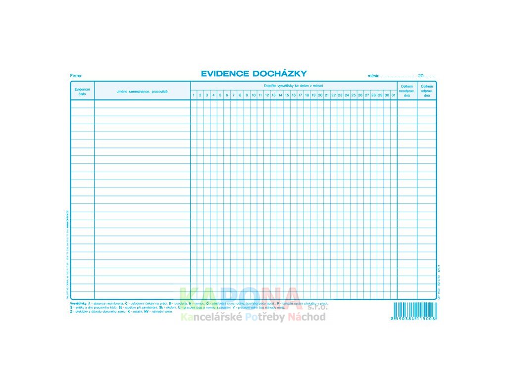 č.1150, nepropisovací, nečíslovaná, dvoustranný tisk, formát A4 na šířku, papír 70g