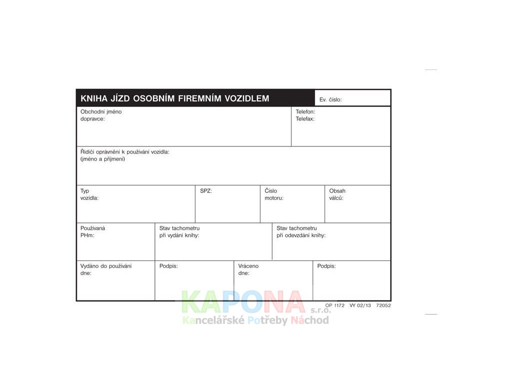 Kniha jízd osobním firemním vozidlem A6, Optys 1172