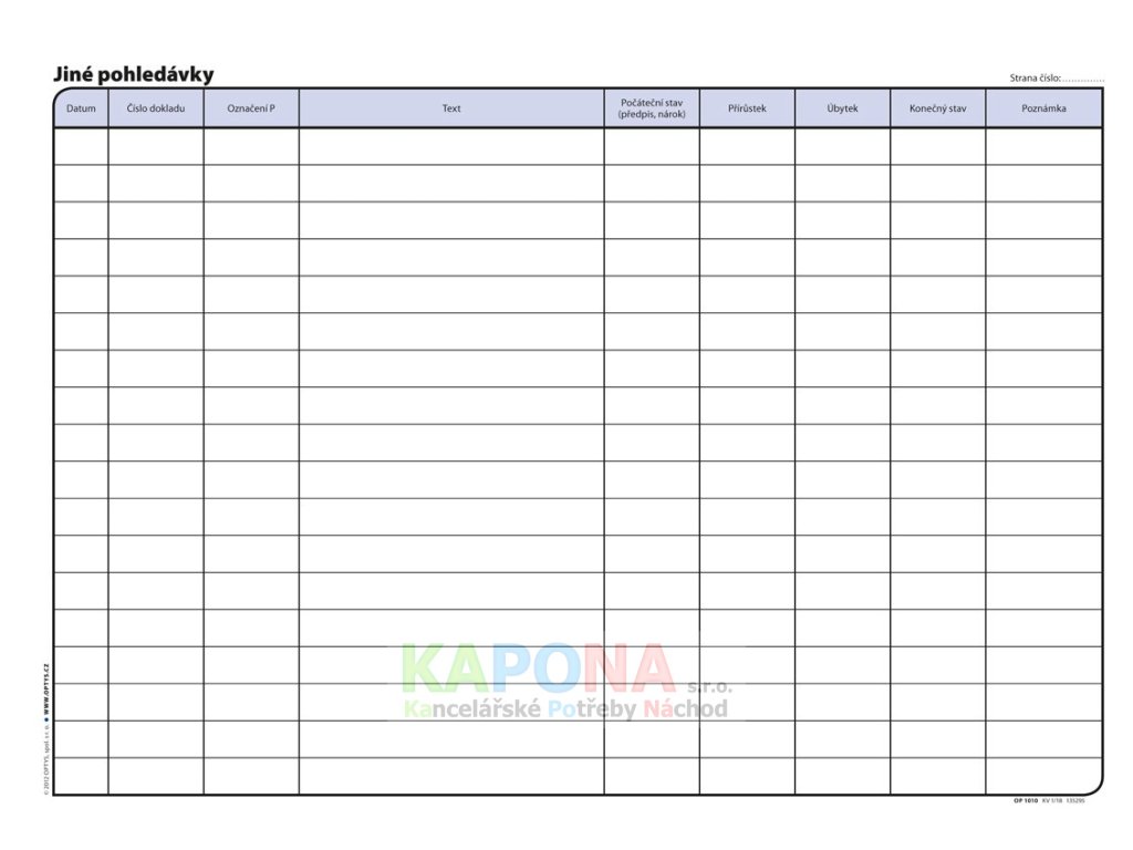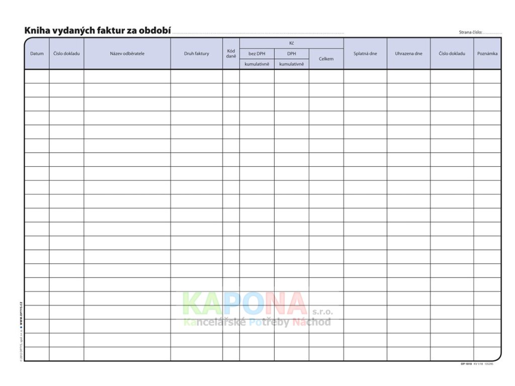 č.1010, pro daňovou evidenci (jendoduché účetnictví) i podvjné účetnictví, tiskopis je dle nové legislativy přizpůsoben pro 3.daň z přidané hodnoty, došlo tedy k rozšíření kolonek, nepropisovací, formát A4 na šířku, 32 listů.