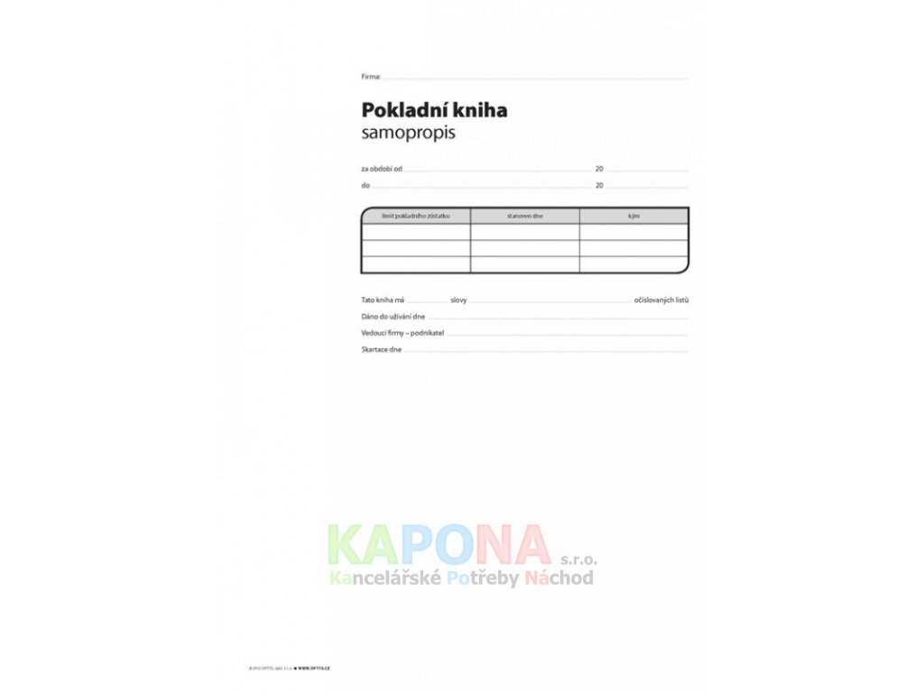 Pokladní kniha s DPH A4, samopropisovací, Optys 1014