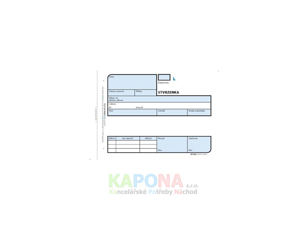 č.1039, vhodný pro podvojné účetnictví, tiskopis je dle nové legislativy přizpůsoben pro 3. daň z přidané hodnoty, došlo tedy k rozšíření kolonek, nepropisovací, číslovaný, formát A6 na šířku, obsahuje 2 x 50 listů odtrižitelných perforací, se zakládacím děrováním.