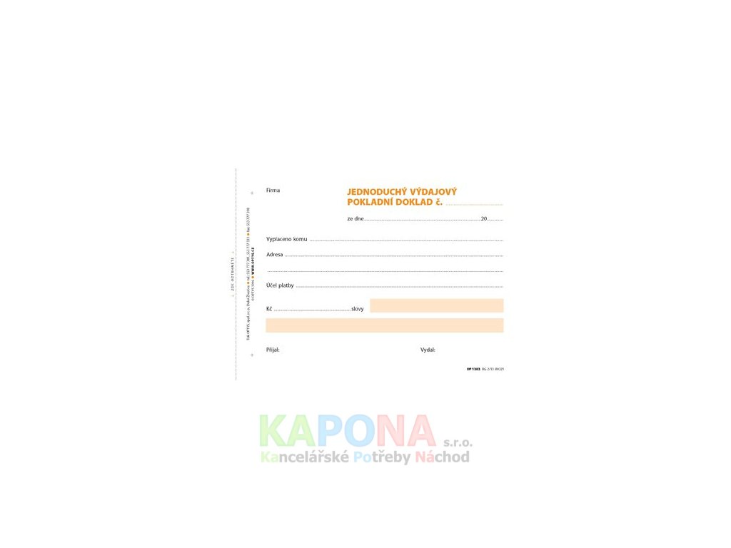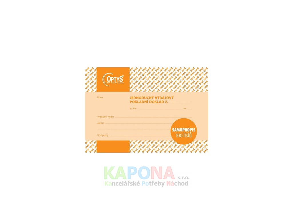Výdajový pokladní doklad A6, jednoduchý, sampropisovací, 100 listů, Optys 1303
