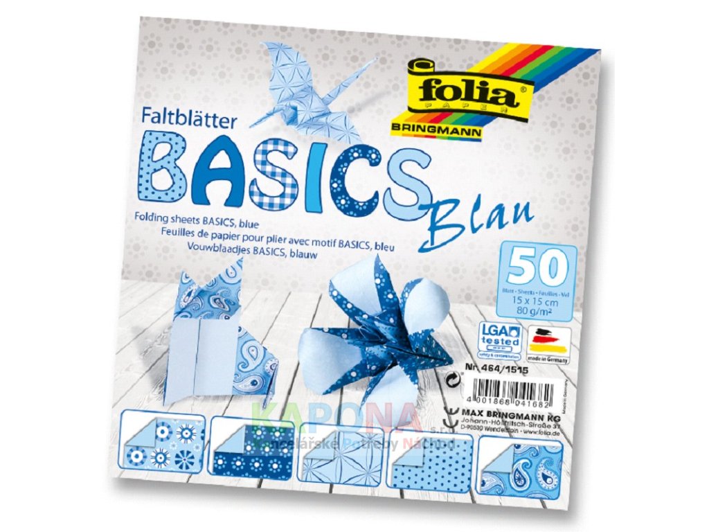 Papír na origami Basics 15x15cm 50 listů - modrý