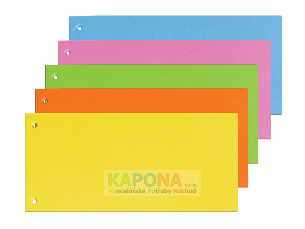 Kartonová barevná páska. Rozměry: 105 x 240 mm. V balení 5 barev po 20 ks.