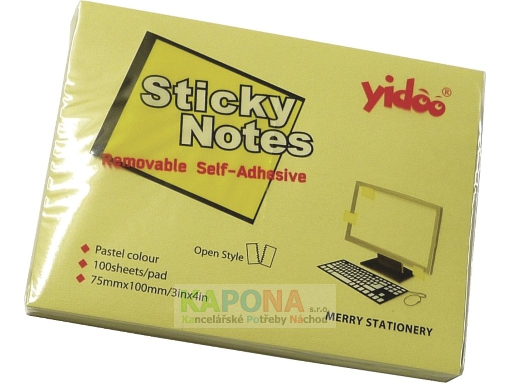 Bloček samolepicí 100 x 75mm, 1x100ls - žlutý