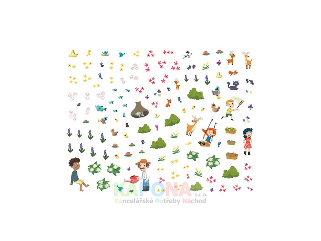 Spousta zábavy s kouzelnými samolepkami! Děti si mohou vytvářet vlastní příběhy a obrázky se samolepkami, které přilnou ke každému hladkému povrchu a nezanechají žádné stopy. Obsahuje 4 barevná pozadí a více než 100 samolepek. 365×280 mm
