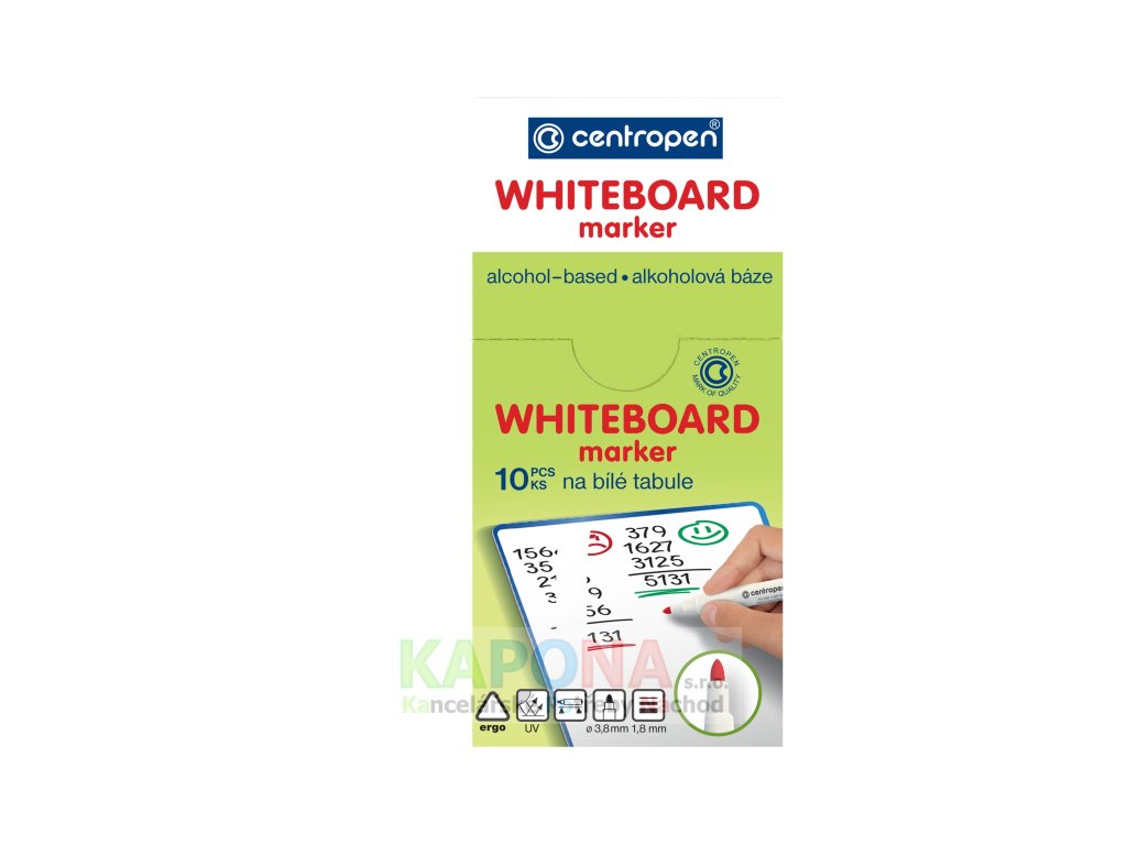 Značkovač na bílé stíratelné tabulky, ERGO držení, zdravotně nezávadný, za sucha stíratelný, světlostálý, alkoholová báze, skladovat ve vodorovné poloze, válcový hrot, šířka stopy 1,8 mm.Doplňkové parametry