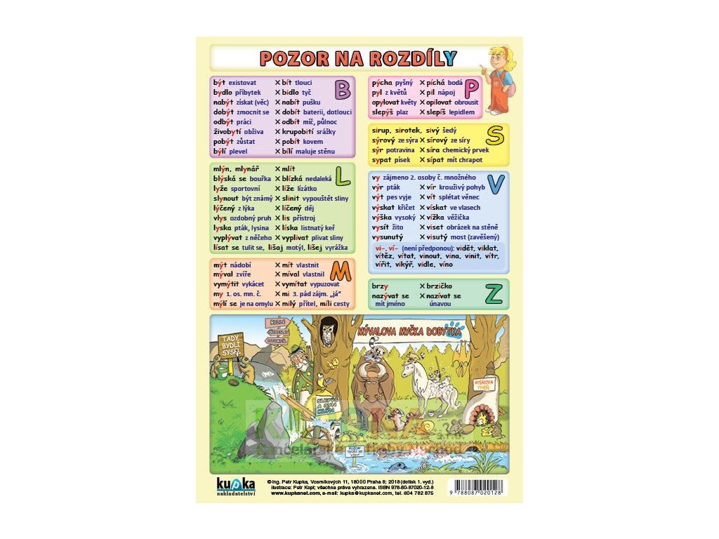 Přehledně zpracovaná ilustrovaná vyjmenovaná slova a slova od nich odvozená doplněná pravopisnými významovými rozdíly v praktickém formátu A5.
