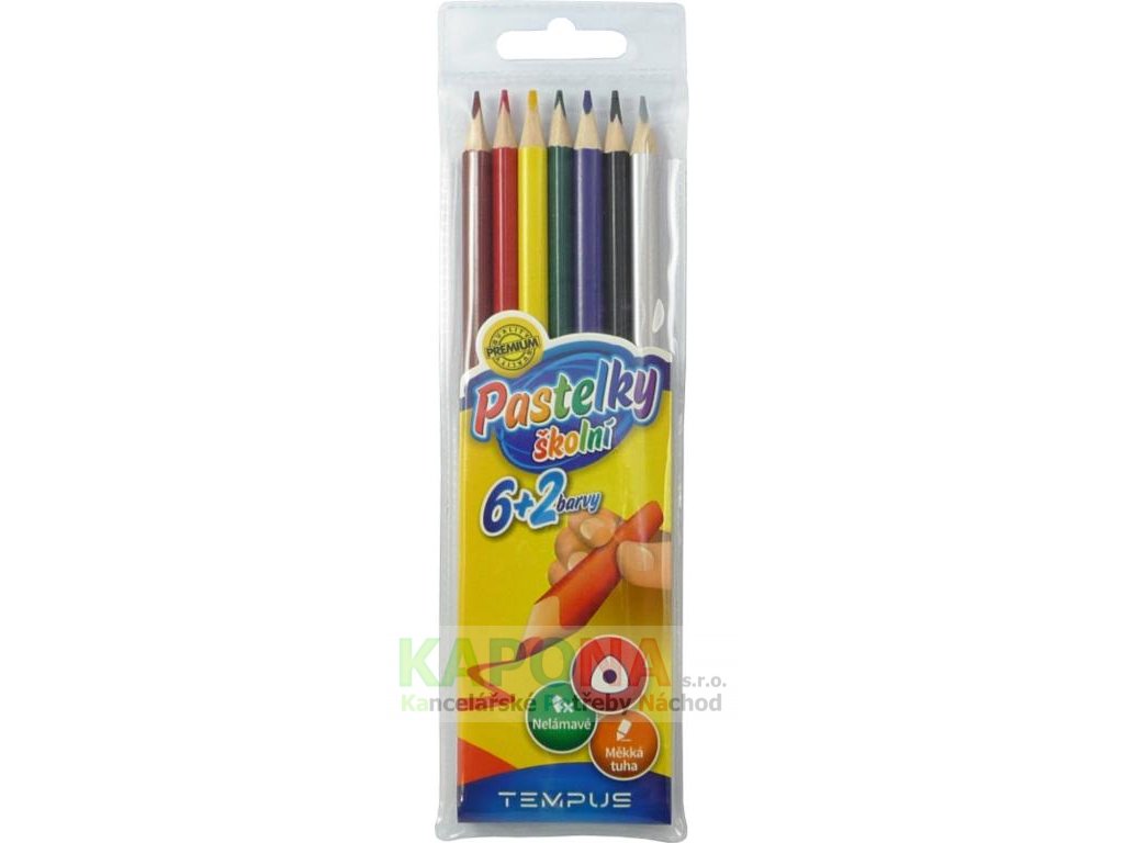 Pastelky Tempus trojhranné 6 + 2 barvy