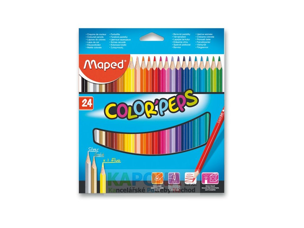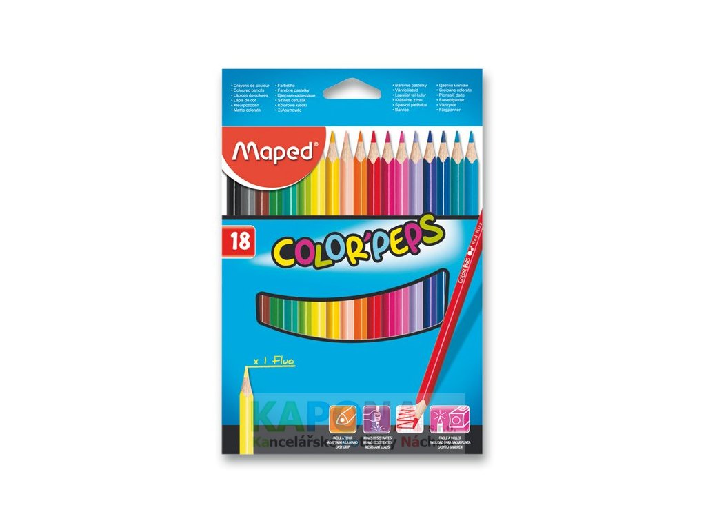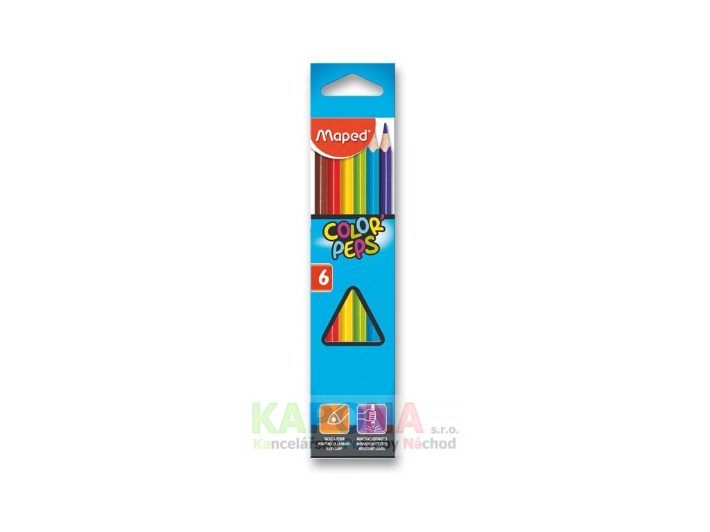 Ergonomické pastelky Maped Color'Peps mají trojhranné tělo, měkkou odolnou tuhu a jasné barvy.Doplňkové parametry