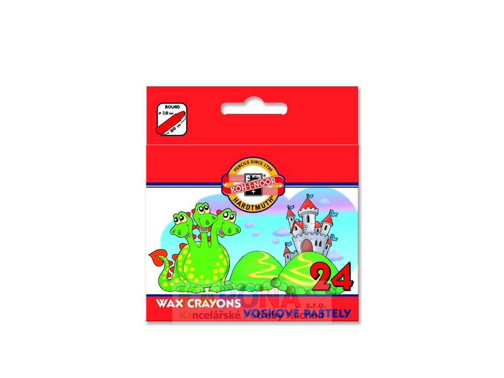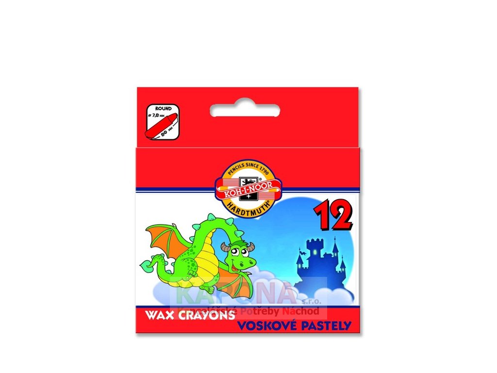 Souprava kulatých voskových pastelů (voskovky). Neobsahují toxické ani škodlivé látky. Délka voskovky 80 mm, průměr 7,8 mm.Doplňkové parametry